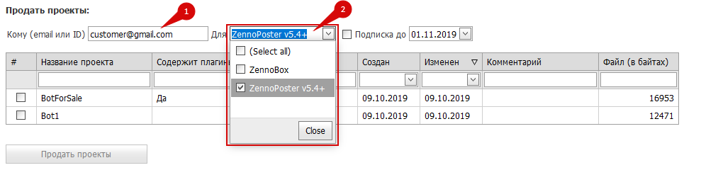 Нужно указать email или ZennoLab ID покупателя